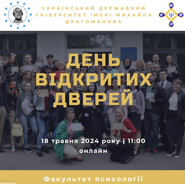 18 травня 2024, з 11:00 в онлайн форматі, відбудеться День відкритих дверей Факультету психології Українського державного університету імені Михайла Драгоманова🤩